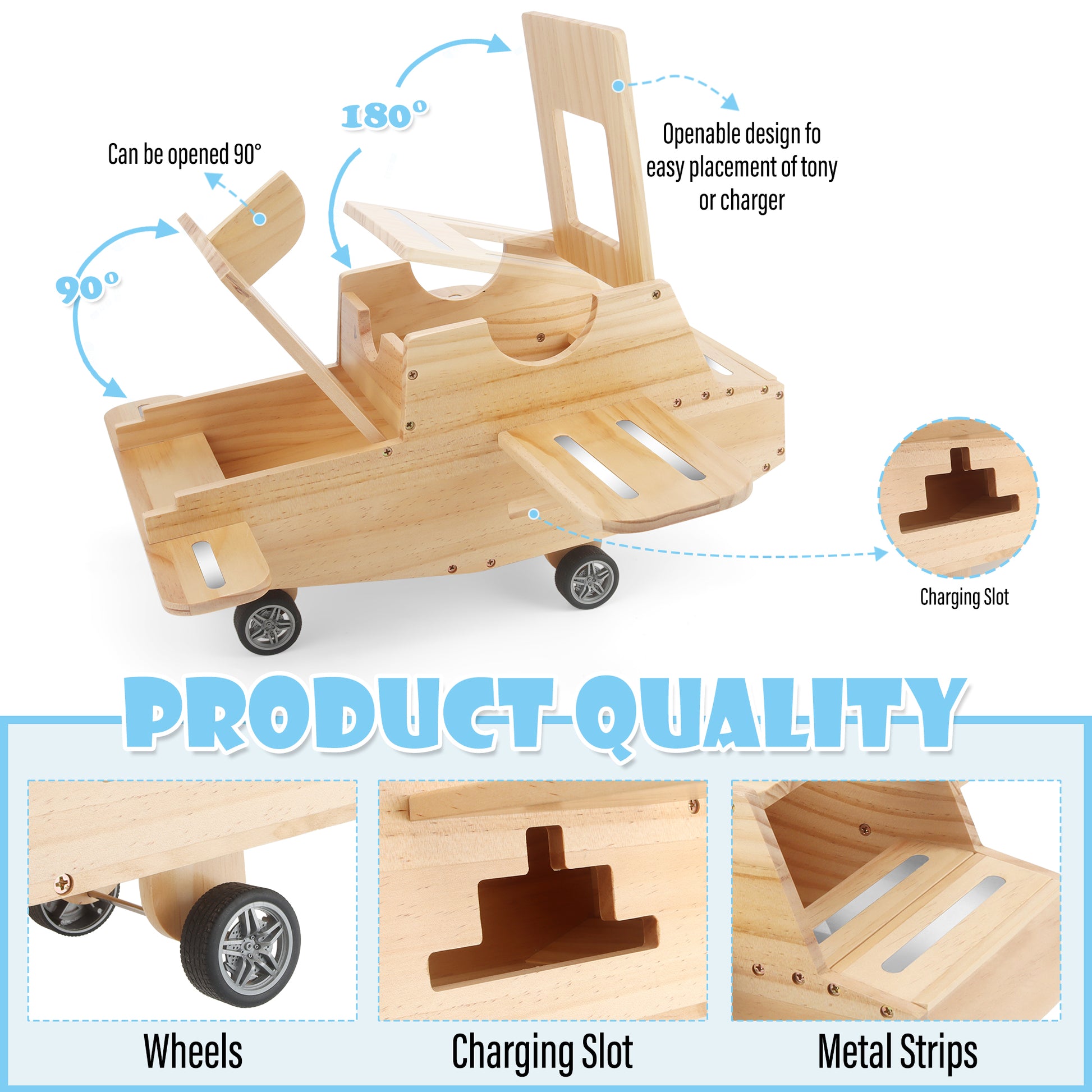 Gefertigt aus hochwertigem Holz und verstärkt mit robusten Metallstreifen, hält dieser Ständer täglichen Starts und Landungen stand. Eine langlebige, wackelfreie Aufbewahrung, der Eltern vertrauen können.