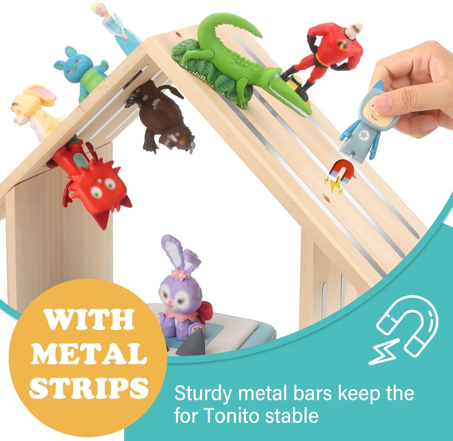 Dieser große, hausförmige Magnet-Organizer ist so konzipiert, dass er Tonie-Figuren sicher hält – sogar kopfüber. Großzügige Größe: 39,67 × 24,8 × 15,97 cm. Die Metallplatten halten die Figuren an Ort und Stelle, ohne den Gebrauch zu unterbrechen.