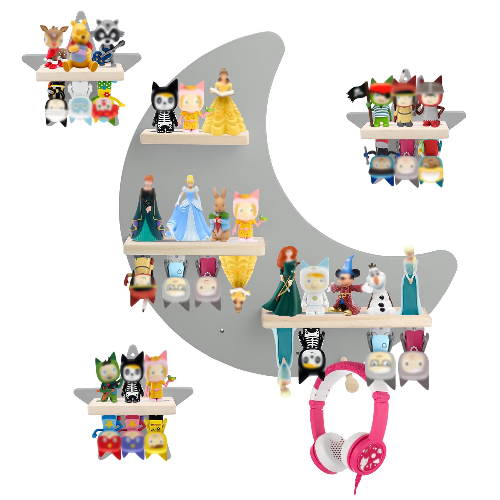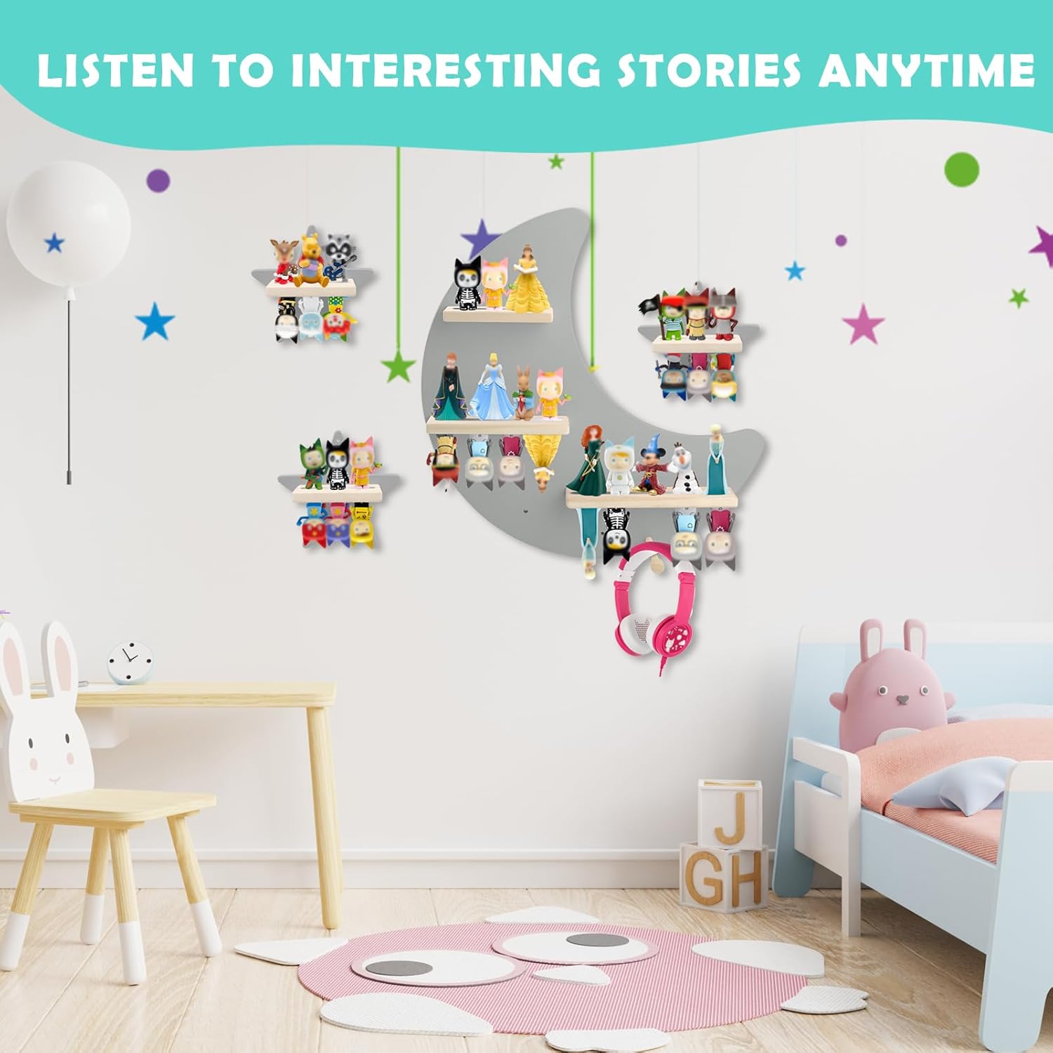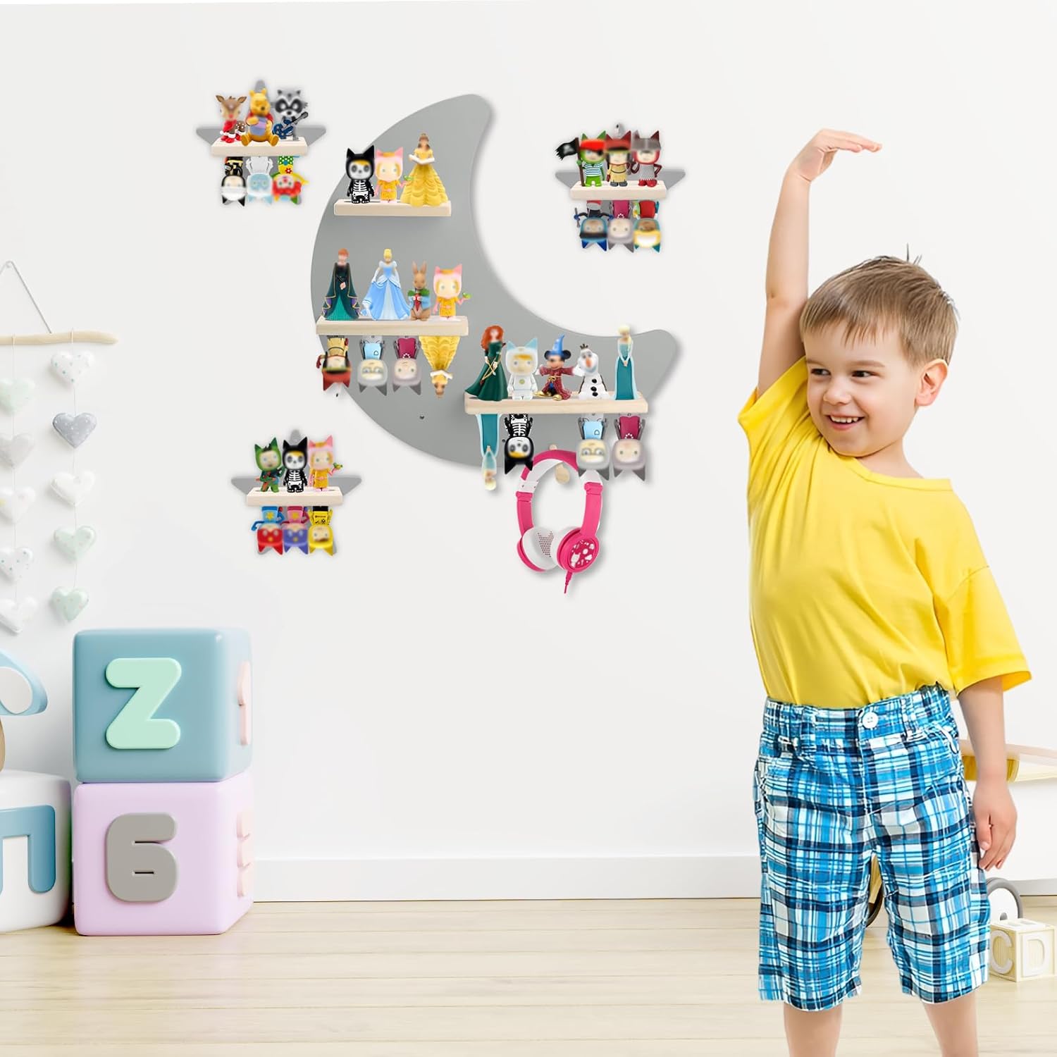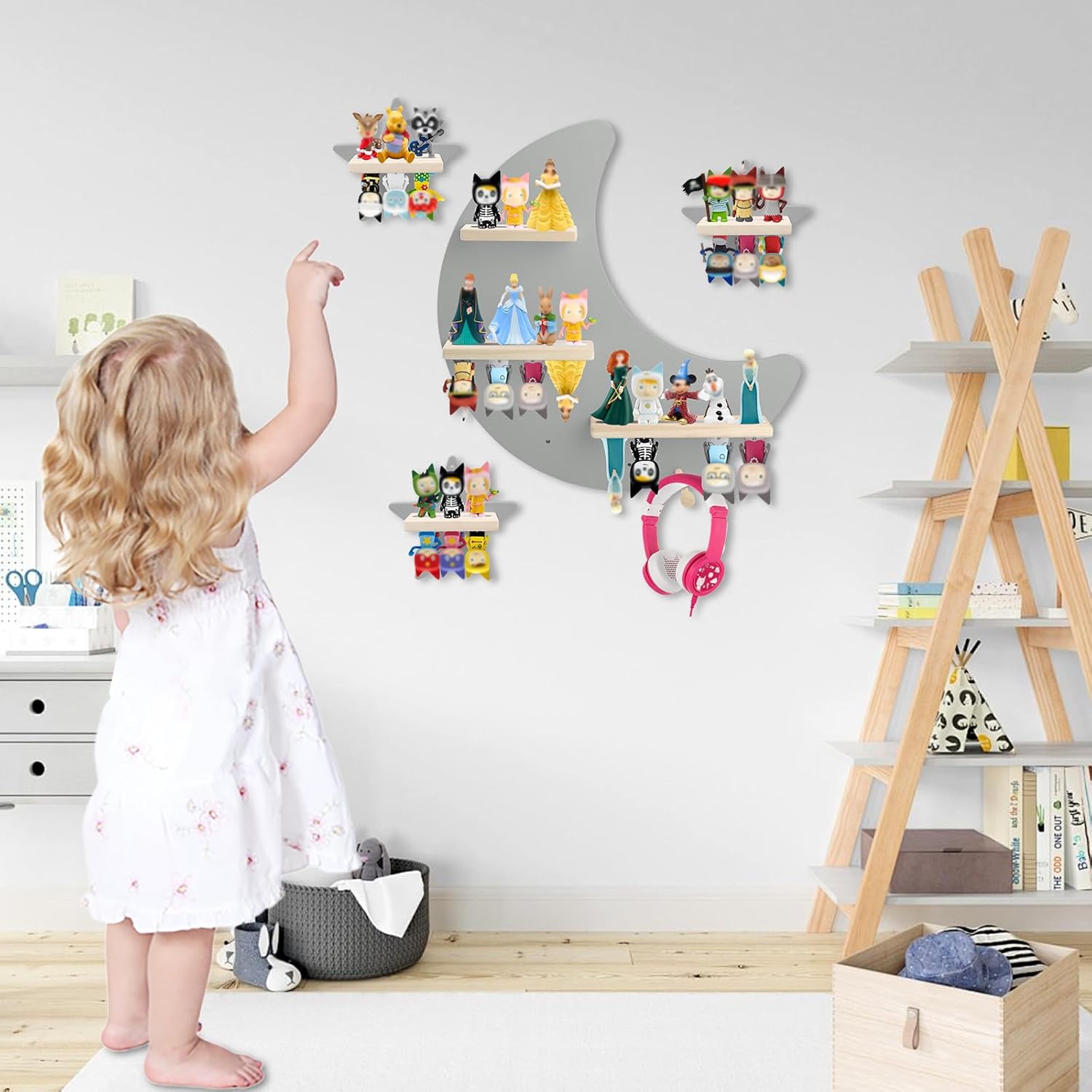 Perfekt für Geburtstage, Feiertage oder die Einrichtung einer speziellen Hör-Ecke – dieses graue Regalset bringt ruhigen, organisierten Stil in jedes Kinderzimmer oder Spielzimmer.