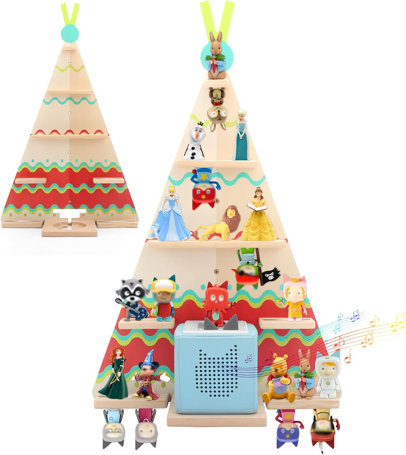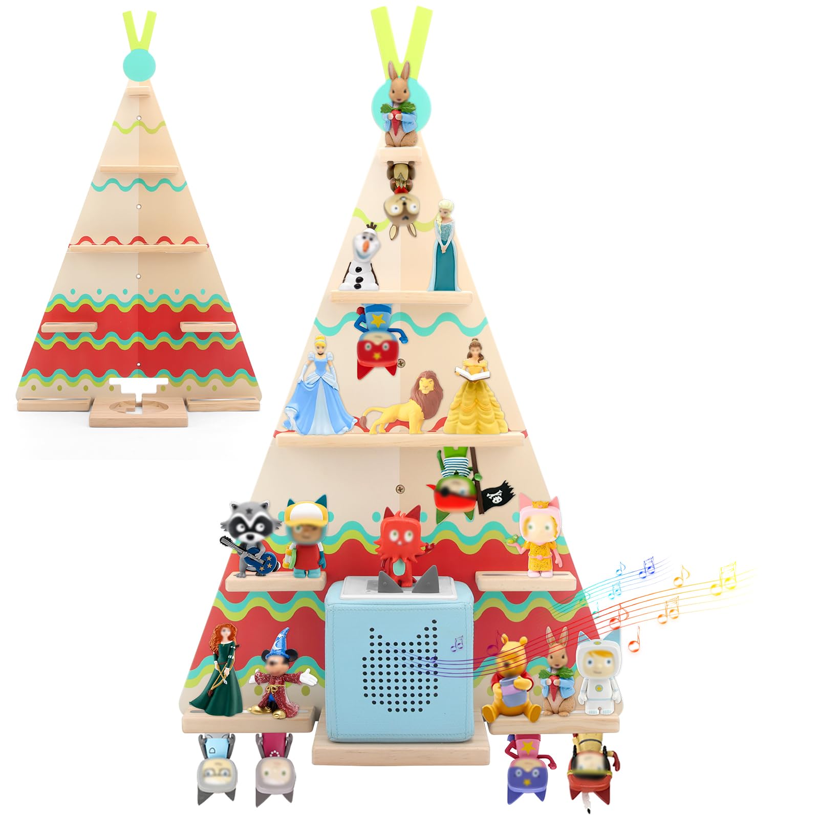 Dieses magnetische zeltförmige Regal ist eine tolle Ergänzung für jedes Kinderzimmer. Es organisiert Tonie-Figuren, Toniebox und Ladestation ordentlich zusammen – so gehen keine Teile mehr verloren oder werden verlegt.