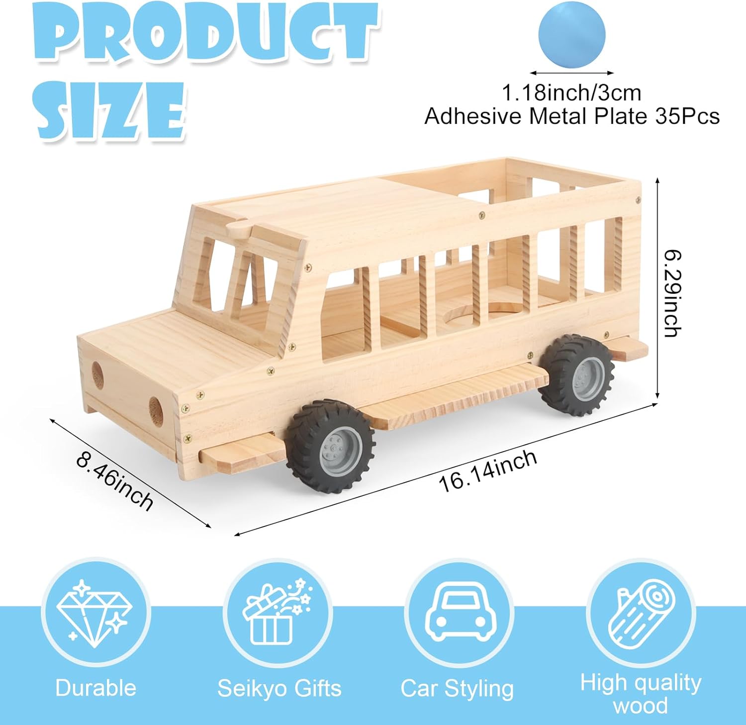 Hergestellt aus Massivholz mit glatten, abgerundeten Kanten – sicher für Kinder. Die mitgelieferten Metallplättchen sind stark magnetisch und halten die Figuren stabil und sicher.