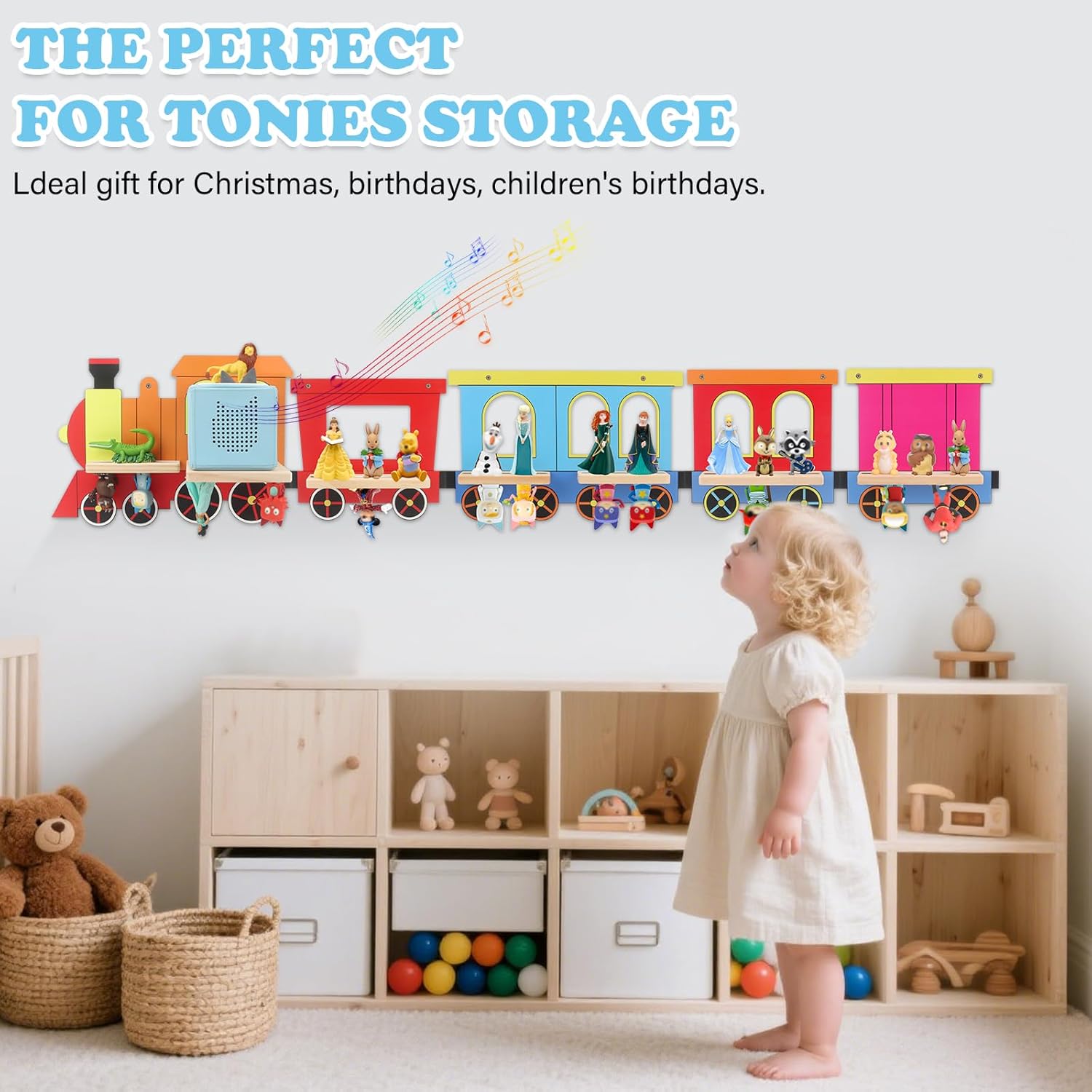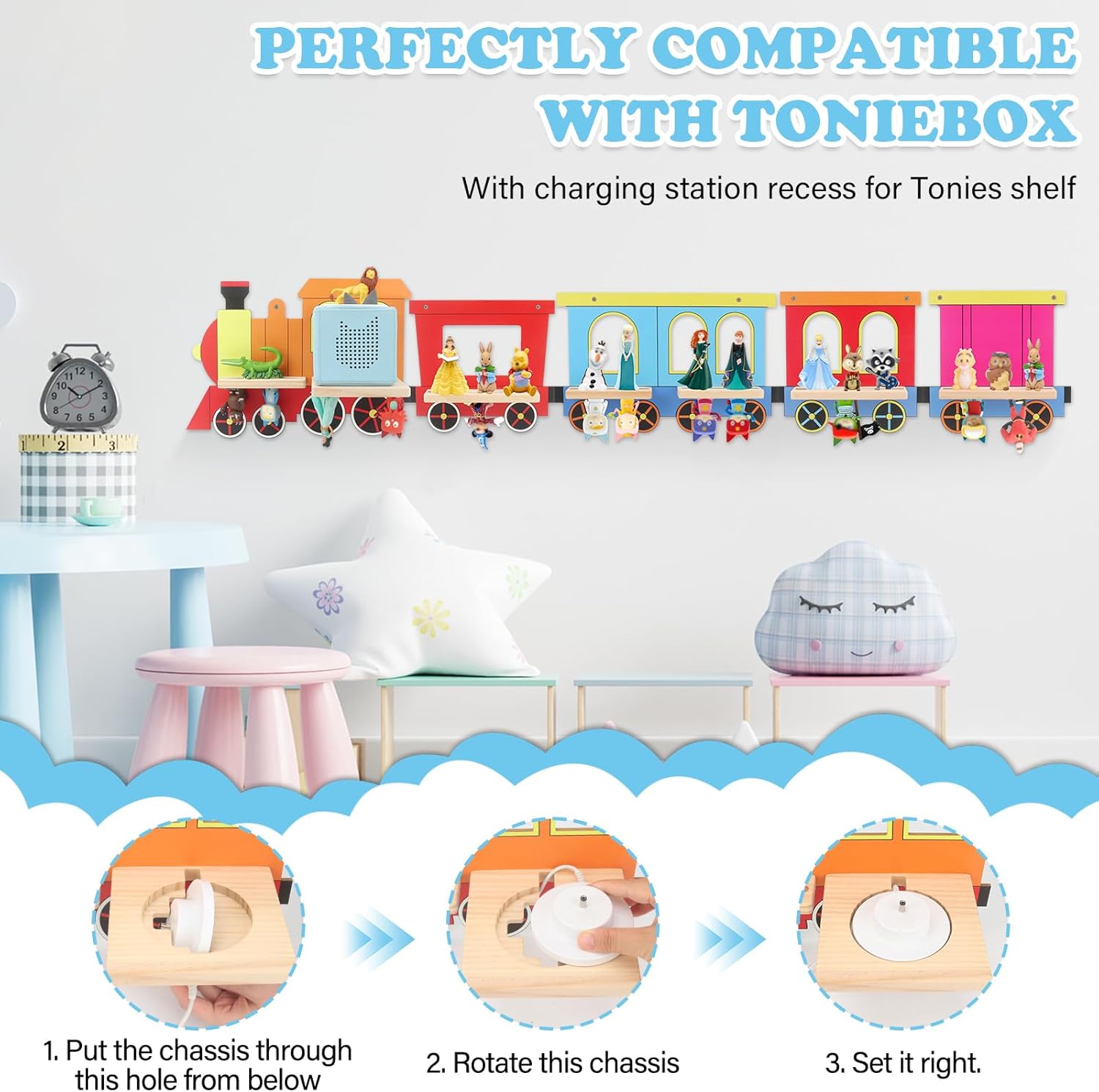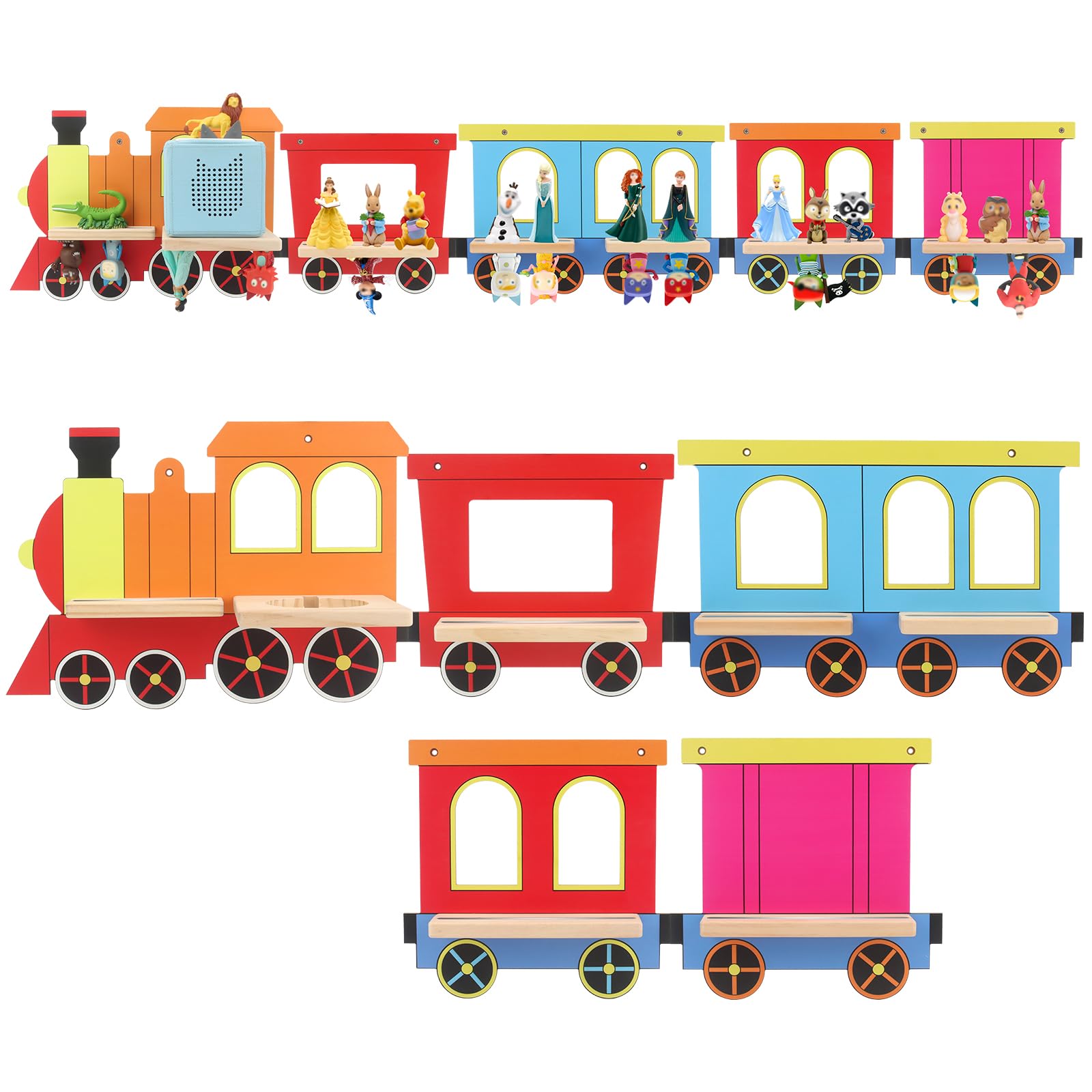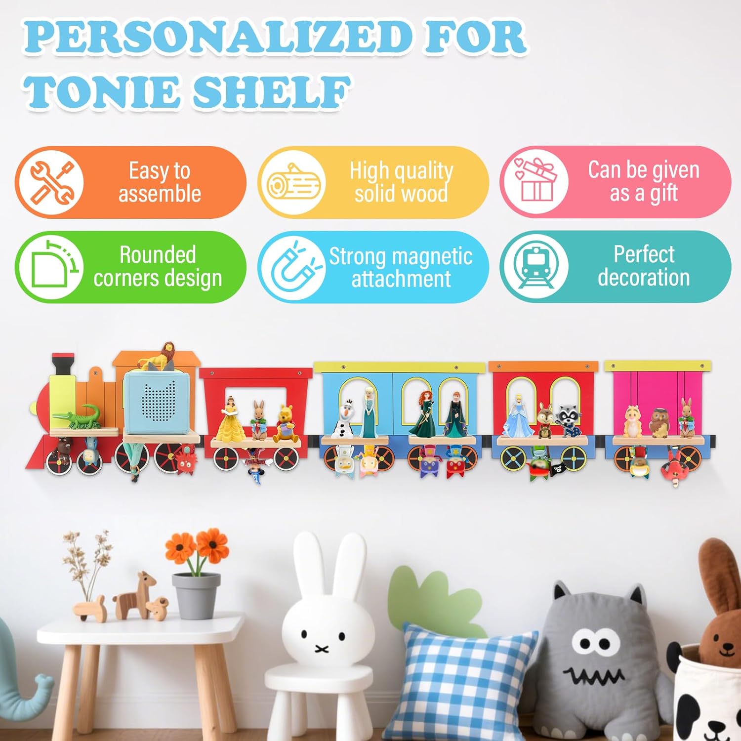Dieses farbenfrohe fünfteilige magnetische Zugregal ist eine großartige Ergänzung für jedes Kinderzimmer. Es organisiert Tonie-Figuren, Toniebox und Ladestation ordentlich zusammen – so gehen keine Teile mehr verloren oder werden verlegt.